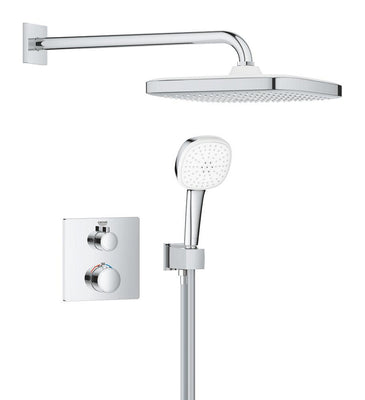 - GROHE Grohtherm Concealed Shower System with thermostat (2 outlets), Tempesta 250 Cube head shower and Tempesta 110 Cube hand shower (2 sprays), square design, concealed installation, water-saving, chrome. 1039950000