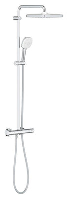 - GROHE Tempesta 250 Cube shower system with thermostat, soft square 250mm head shower (1 spray) and soft square 110mm hand shower (2 sprays), wall-mounted, water-saving, chrome. 26689001