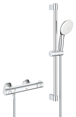 - GROHE Grohtherm 800 shower set: thermostat, round 110mm hand shower (2 sprays), 1750mm hose and 600mm rail. Safety functions, water-saving, wall-mounted, chrome. 34565002