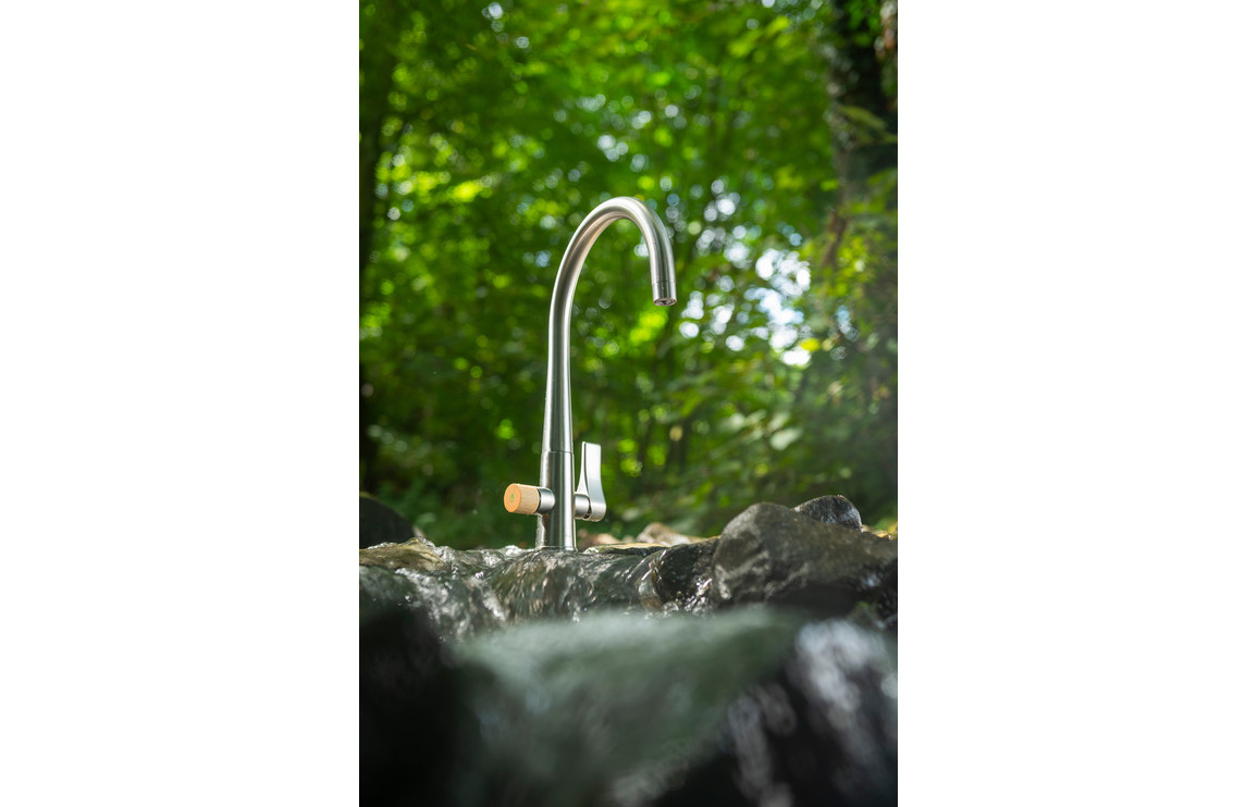 - A contemporary Abode Natural tap in brushed nickel & beech with a brushed finish
