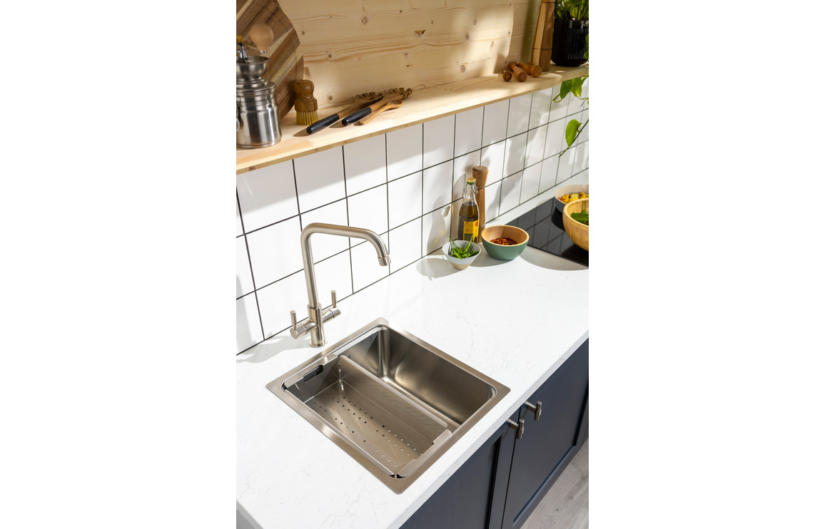 - Made from sturdy stainless steel sitting nicely into System Sync bowls you can rinse straight into your sink making it both safer and easier to use than conventional colanders