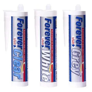 Forever White, Clear & Grey is a superior silicone sealant that is permanently waterproof and flexible and ideal for sealing shower bases and cubicles, wet rooms, around baths, sinks and basins. It is also ideal for use in kitchens and utility rooms along with sealing window and door frames.