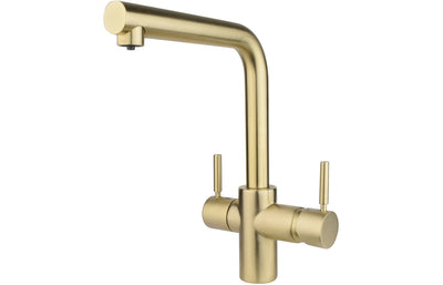 - A contemporary InSinkErator 3N1 L Shape tap in gold with a polished finish